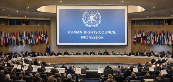 📷 الصورة المقترحة: قاعة مجلس حقوق الإنسان في جنيف أثناء انعقاد الجلسة.