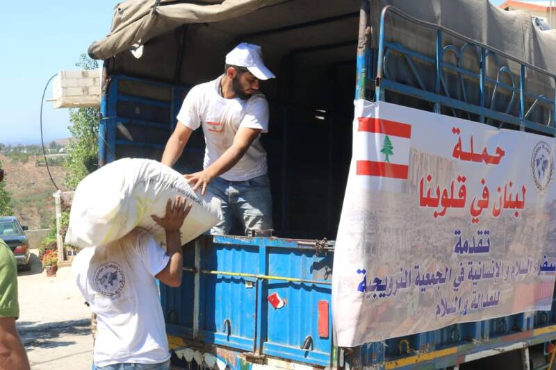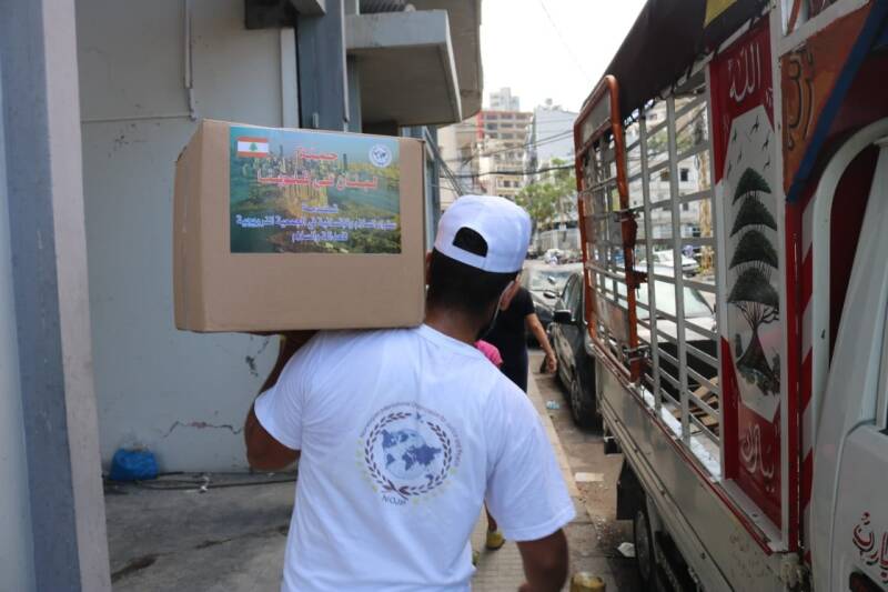 توزيع المساعدات الغذائية في لبنان