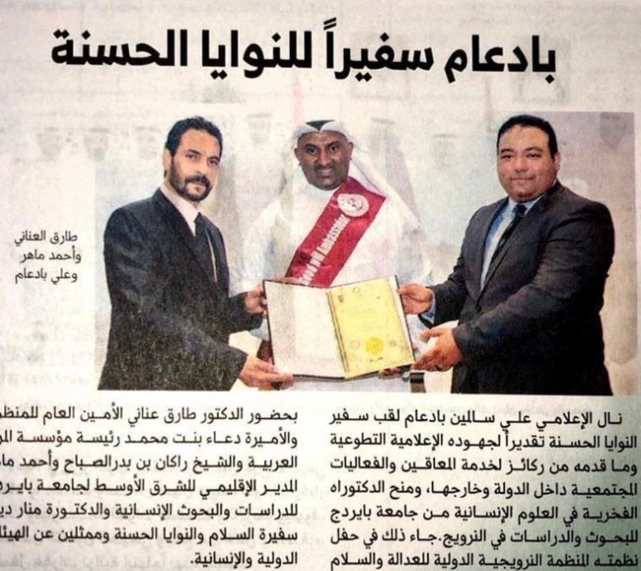 A prominent Saudi businessman who was honored with the title of Goodwill Ambassador in recognition of his support for humanitarian initiatives and his contributions to promoting peace, cooperation, and dialogue between cultures.