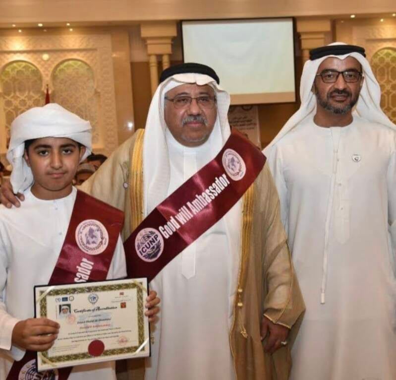 تم تكريمه من قبل الجمعية النرويجية الدولية للعدالة والسلام بلقب سفير السلام تقديراً لجهوده في دعم مبادرات السلام والعمل الإنساني وتعزيز الحوار والتعاون بين الثقافات2022اماره دبي